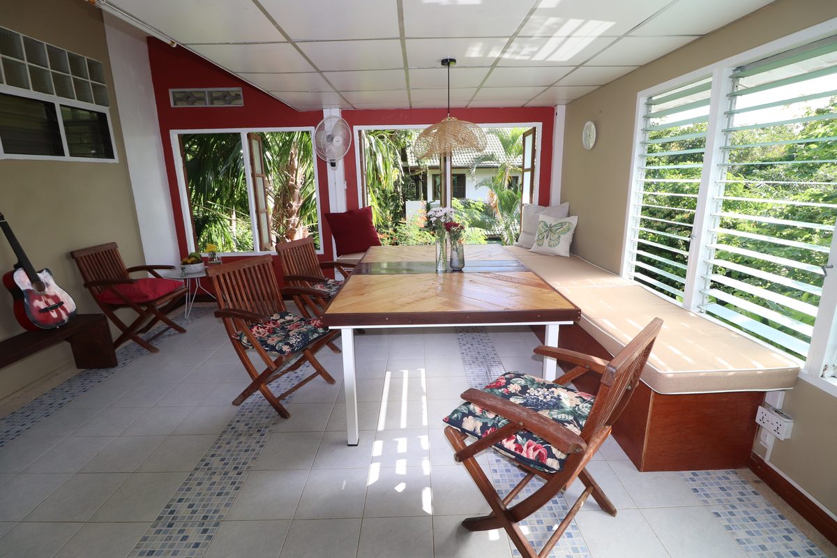 Three bedrooms, two with private bathrooms. A 42 m² kitchen built around a hand-made table that seats ten. Floating beds, brick walls, and a constant sea breeze coming up the hill.